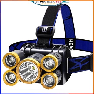 Đèn Pin Đội Đầu Đeo Trán 5 Bóng T6 Siêu Sáng Kèm Pin Sạc gọn gàng thuận tiện