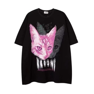 Áo Thun 100% Cotton Nguyên Chất In Hình Mèo Hoạt Hình Phong Cách Đường Phố Thời Trang Dành Cho Nam Nữ