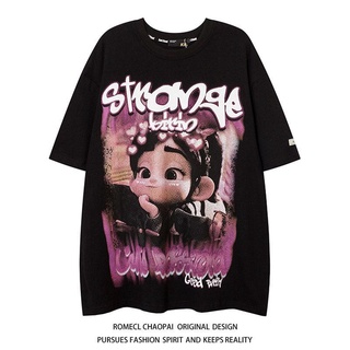 Áo phông tay ngắn dáng rộng phong cách đường phố Hip Hop kiểu Mỹ cho nam và nữ