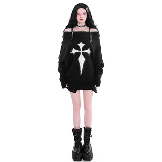 Áo Sweater Dệt Kim Mỏng Nhẹ Thoáng Khí Dây Chéo Vai Đính Đinh Tán Họa Tiết Dễ Thương