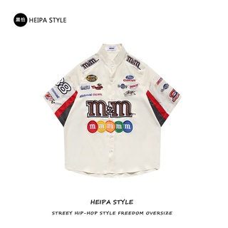 Áo Thun polo Ngắn Tay Dáng Rộng Thêu Hình Phong Cách Đường Phố Retro Cho Nam