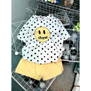 Sét bộ áo thun form rộng chấm bi mặt chữ phối quần đùi cực xinh , chất thun coton dày dặn