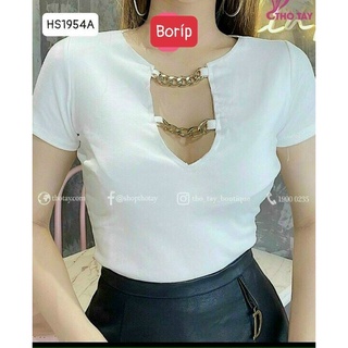 Áo kiểu croptop tay ngắn khoét núm cổ dây xích cực hot , chất thun bozip mềm mịn