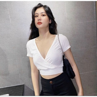 Áo kiểu croptop đắp chéo ngực trơn cực xinh , chất thun bozip mềm mịn ( ảnh thật )