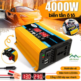 Bộ chuyển đổi điện 4000W 12V Sang 220V-Bộ Sạc Điện Xe Hơi- Bộ Kích điện Biến Tần Với Cổng USB Kép có Màn Led 88404
