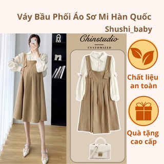 Váy Bầu Thiết Kế Phối Áo Sơ Mi Hàn Quốc