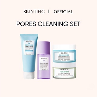 Combo Pores Cleaning SKINTIFIC gồm Sữa rửa mặt 5X 80ml + Mặt nạ đất sét ngải cứu 55g + Toner 80ml + Kem dưỡng ẩm 5X 30g
