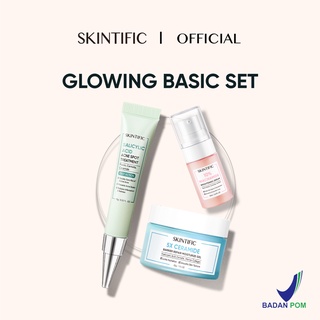 Combo Glowing Basic SKINTIFIC gồm Serum Niacinamide 20ml + Gel chấm mụn 10g + Kem dưỡng ẩm 5X 30g