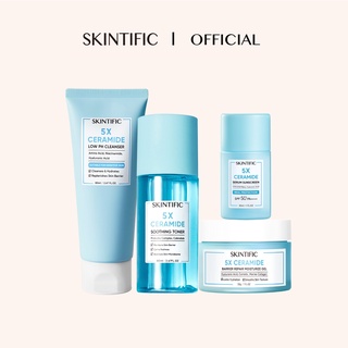 Combo SKINTIFIC gồm Sữa rửa mặt 5X 80ml + Toner 80ml + Toner 100ml + Serum 20ml + Kem dưỡng ẩm 5X 30g (quà tặng kèm)