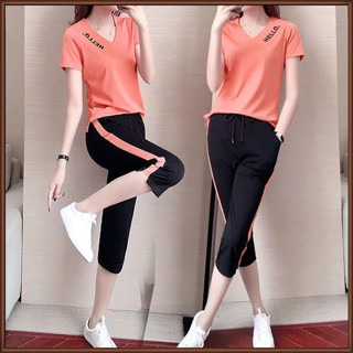 Set Đồ Thể Thao 2 Món Áo Tay Ngắn Phối Quần Dài Thời Trang Năng Động Cho Nữ