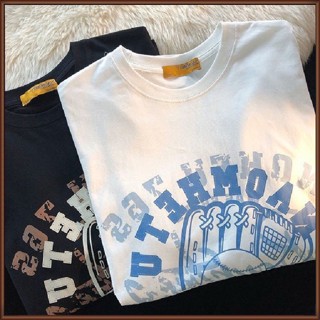 Áo Thun Tay Ngắn Cổ Tròn Dáng Rộng In Hình Găng Tay Bóng Chày Thời Trang Mùa Hè Cho Nữ