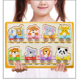 Bộ ghép hình xếp hình núm gỗ nhiều mẫu- Đồ chơi bằng gỗ - Smart Baby -ĐỘNG VẬT 035- dochoigo035
