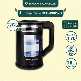 Ấm Siêu Tốc SMARTCHOICE 1.7L, Ấm Đun Nước Inox 304 - Bảo Hành 12 Tháng SCG-K001