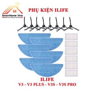 Phụ kiện robot hút bụi Ilife V3, V3 Plus, V3S, V3S Pro, khăn lau, giẻ lau, lọc bụi, hepa, chổi cạnh, chổi quét.