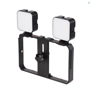 Bộ 2 Khung Đèn LED Andoer Mini 5W 6500K Có Thể Điều Chỉnh Độ Sáng + Giá Đỡ Điện Thoại Ổn Định Quay Video + 3 Giày Lạnh