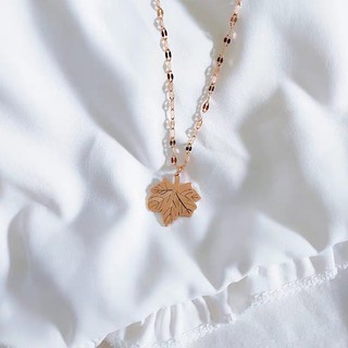Dây Chuyền Thép Titan Mạ Vàng Hồng 18K Mặt Chiếc Lá Phong Nhỏ Thời Trang Hàn Quốc