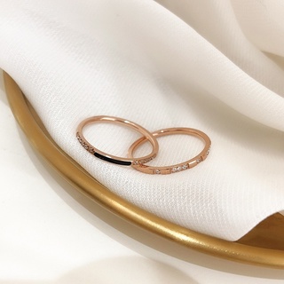 Nhẫn Thép Titan Mạ Vàng Hồng 18K Đính Kim Cương Nhân Tạo Phong Cách Âu Mỹ Thời Trang