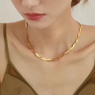 Dây chuyền hai sợi xoắn vào nhau họa tiết xương rắn bằng thép titan mạ vàng 18K phong cách Âu Mỹ cổ điển cao cấp