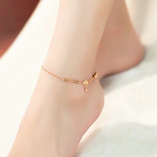 Lắc chân thép titan không gỉ 316L mạ màu vàng hồng 18k hình mặt cười chống nước không gây dị ứng