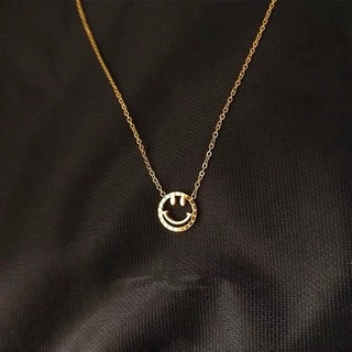 Dây chuyền bằng thép titan mạ vàng hồng 18K mặt hình mặt cười rỗng tinh tế phong cách Hàn Quốc sang trọng
