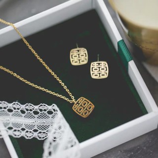 Bộ Dây Chuyền Bông Tai Bằng Thép Titan Mạ Vàng 18K Thiết Kế Thời Trang Đơn Giản Đa Dạng Phong Cách Mới