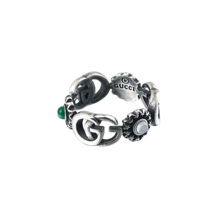 Nhẫn Đôi Khắc Chữ Distress Đính Đá Ngọc Lam Phong Cách Đường Phố Unisex
