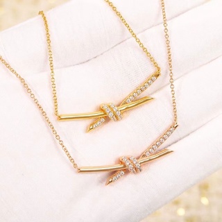 Vòng Cổ Nơ Kim Cương Bằng Thép Không Gỉ Sang Trọng Nhẹ Nhàng Cho Cặp Đôi