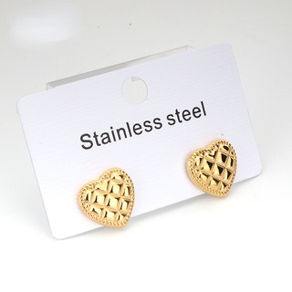 Bông tai mạ vàng 18K hình trái tim họa tiết lưới kim cương đơn giản thời trang cho nữ