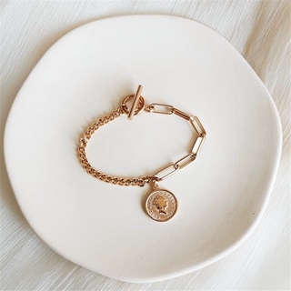 Vòng Tay Thép Titan Phối Mặt Hình Đồng Xu / Nữ Hoàng Thời Trang
