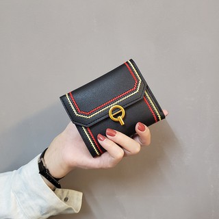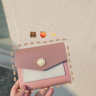 Ví Ngắn Gấp Gọn Màu Trà Xanh/Cà Phê/Trà Có Khóa Cài Đơn Giản Phong Cách Hàn Quốc Đơn Giản Dễ Phối Đồ Cho Nữ Sinh