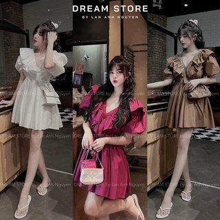 Váy Xinh Tay Bồng Cổ Nơ Tiểu Thư Bánh Bèo Vải Tafta Hàng Thiết Kế - Freeship Toàn Quốc- NV442