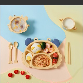 Bộ Khay Ăn Dặm Hình Cua 6 Chi Tiết khay,Bát,Cốc,Thìa,Đũa,Dĩa Cho Bé Chống Rơi Vỡ