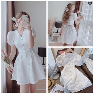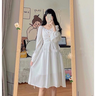 Váy Tiểu Thư Rúm Ngực Bánh Bèo Màu Trắng Tinh Khôi, Đầm Bánh Bèo Dự Tiệc Màu Trắng ( video shop tự quay )