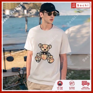 Áo thun tay ngắn nam, áo cộc tay nam cổ tròn in hình gấu kẻ mã CZ600