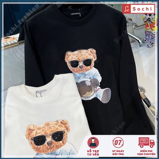 Áo nỉ sweater nam unisex, áo thu đông nỉ mềm mịn ôm người in Gấu Đeo Túi mã S.W605