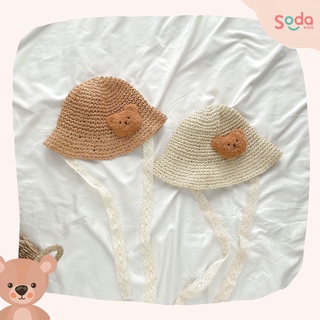 Mũ cói trơn buộc dây đính gấu nâu 9-24m (Ảnh thật)
