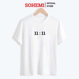 Áo thun nam SOHEMI in 11:11 màu đen trắng cổ tròn vải cao cấp co giãn 4 chiều