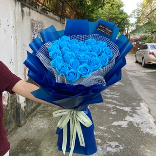 Bó Hoa Hồng Xanh Giấy Xanh Trái Tim Tặng Người Yêu, Tình Nhân, Sinh Nhật, Sự Kiện, Bouquet Of Flowers ( Hoa Sáp Thơm )
