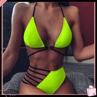 Bộ Đồ Bơi Bikini Bằng Da Phối Dây Buộc Hở Vai Dáng Ôm Thời Trang Mùa Hè Dành Cho Bạn Nữ