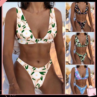 Bộ Bikini Hai Mảnh Cổ Chữ V Khoét Sâu Dây Bản Rộng In Họa Tiết Hoa Cho Nữ