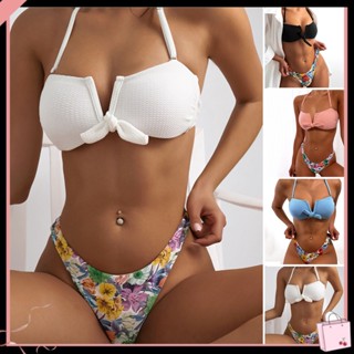 Bộ Đồ Bơi Bikini 2 Mảnh Họa Tiết Hoa Nhiều Màu Sắc Có Dây Buộc Cổ Dành Cho Nữ