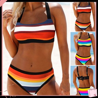 Bộ Đồ Bơi 2 Mảnh Cổ Chữ U Họa Tiết Kẻ Sọc Màu Sắc Tương Phản Thời Trang Cho Nữ