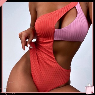 Bộ Đồ Bơi Cổ Chữ V Màu Nhuộm Tương Phản Thời Trang Mùa Hè Dành Cho Nữ