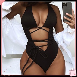 {Soltweter} Bộ Đồ Bơi Một Mảnh Dây Chéo Một Màu Trơn Khoét Rỗng Cho Nữ
