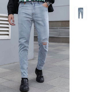 Quần Jean Nam Skinny Rip Details Dark Blue , Chất Vải Cotton Pha Spandex Thoải Mái ,QJ0018-01,Somehow