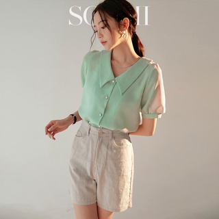 Áo Linen Nữ SONMI Hàn Quốc Kiểu Áo Sơ Mi Tay Ngắn Cổ Vest Công Sở Cao Cấp Form Rộng MALLORY OPAL