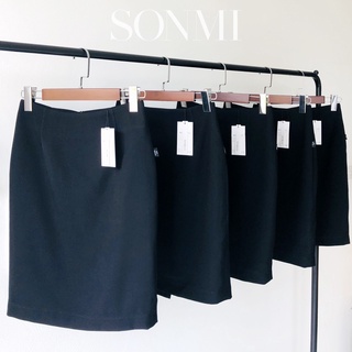 Chân Váy Công Sở SONMI Hàn Quốc Cao Cấp Màu Đen Dáng Suông Xẻ Tà Sau 2 Lớp Co Giãn 2 Chiều JULIE CATHIE