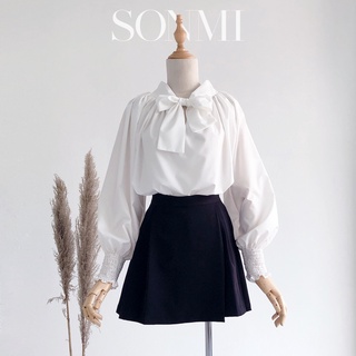 Sơ Mi Nữ Form Rộng Tay Dài SONMI Hàn Quốc Thiết Kế Cao Cấp Cổ Nơ 2 Màu Trắng Đen Lụa Hàn LYNDEN MIA