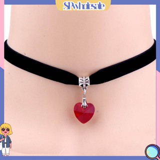 Vòng Cổ Choker Dây Nhung Mặt Trái Tim Đính Đá Phong Cách Gothic