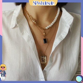 Vòng cổ Nhiều Tầng Mặt Hình Vuông Đính Ngọc Trai Nhân Tạo Thời Trang Dành Cho Nữ